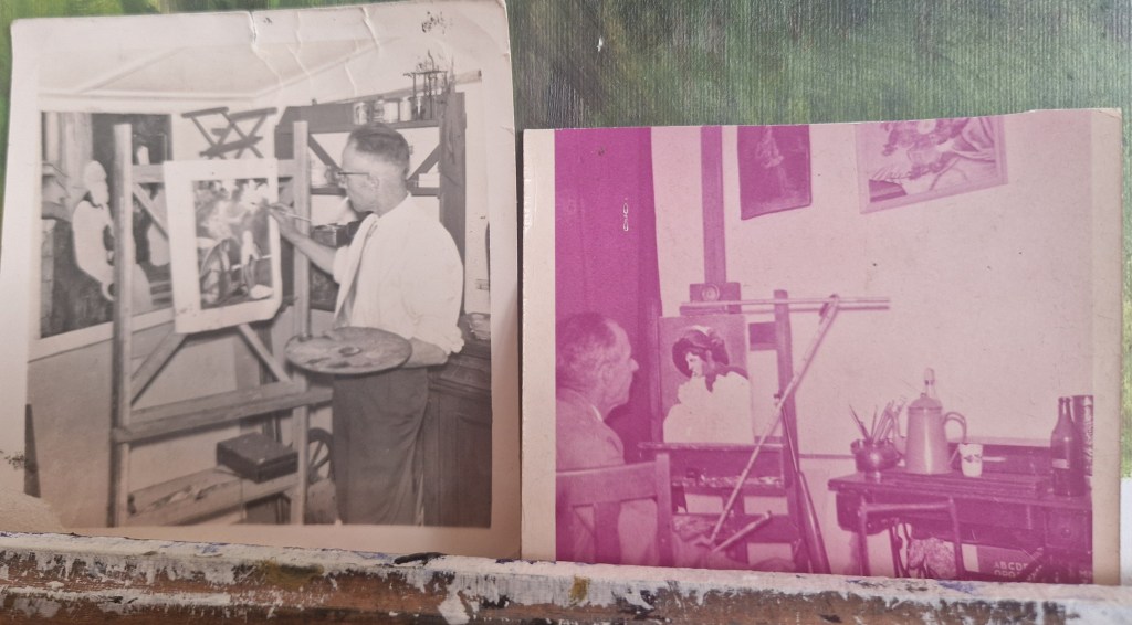Mijn overgrootvader aan het schilderen. Deze polaroids uit de jaren 60 staan altijd in mijn atelier.